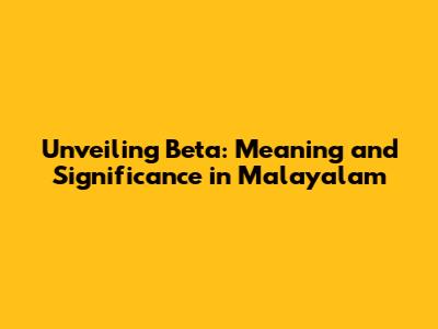 Unveiling 'Beta': Meaning And Significance In Malayalam