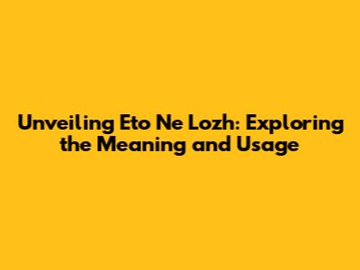 Unveiling 'Eto Ne Lozh': Exploring The Meaning And Usage