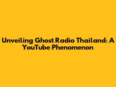 Unveiling Ghost Radio Thailand: A YouTube Phenomenon