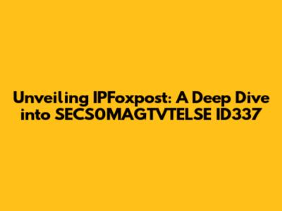 Hey everyone! Let's dive deep into something intriguing: IPFoxpost and its connection to SECS0MAGTVTELSE ID337. I know, the names might seem a bit like tech jargon soup, but trust me, it's worth unraveling. We'll explore what these terms mean, why they're important, and how they relate to each other. Think of it as a journey into the heart of online security and data management, and I'm here to be your friendly guide. So, grab your favorite drink, sit back, and let's get started. This is going to be a fun one!
