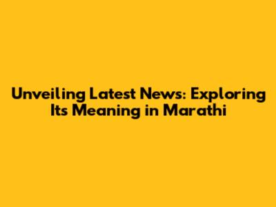 Unveiling 'Latest News': Exploring Its Meaning In Marathi