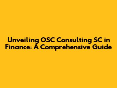 Unveiling OSC Consulting SC In Finance: A Comprehensive Guide
