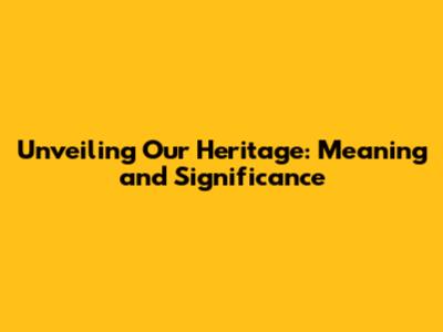 Unveiling Our Heritage: Meaning And Significance