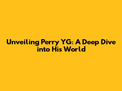 Unveiling Perry YG: A Deep Dive Into His World
