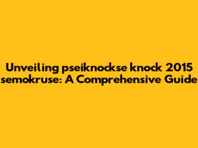 Unveiling Pseiknockse Knock 2015 Semokruse: A Comprehensive Guide