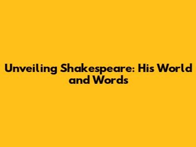Unveiling Shakespeare: His World And Words