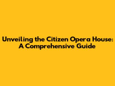 Unveiling The Citizen Opera House: A Comprehensive Guide