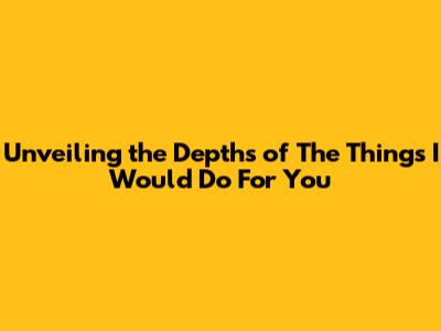 Unveiling The Depths Of 'The Things I Would Do For You'