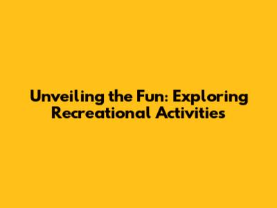 Unveiling The Fun: Exploring Recreational Activities