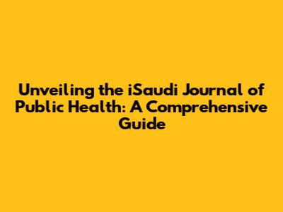 Unveiling The ISaudi Journal Of Public Health: A Comprehensive Guide