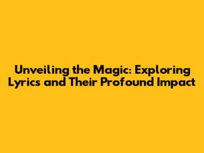 Unveiling The Magic: Exploring Lyrics And Their Profound Impact