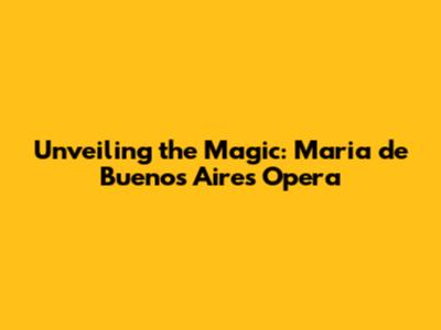 Unveiling The Magic: Maria De Buenos Aires Opera