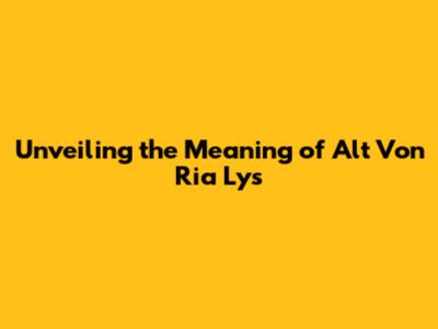 Unveiling The Meaning Of Alt Von Ria Lys
