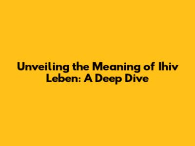 Unveiling The Meaning Of 'Ihiv Leben': A Deep Dive