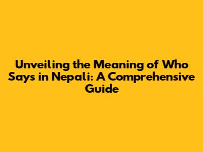 Unveiling The Meaning Of 'Who Says' In Nepali: A Comprehensive Guide