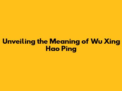 What Exactly Does Wu Xing Hao Ping Mean?