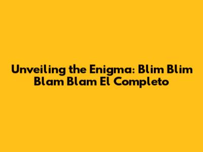 Unveiling The Mystery: Blim Blim Blam Blam El Completo