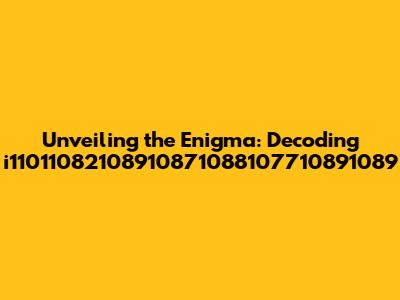 Unveiling The Mystery: Decoding I11011082108910871088107710891089