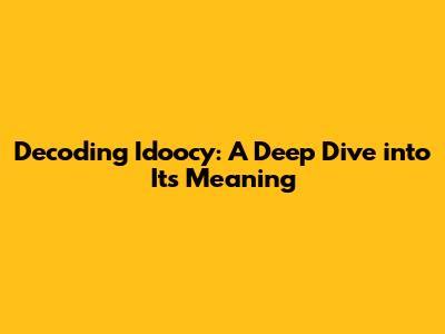 Unveiling The Mystery: What Does Idoocy Mean?