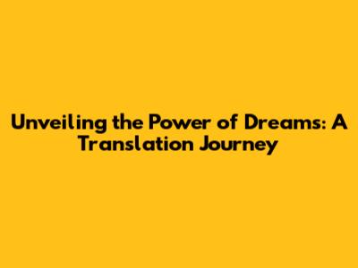 Unveiling The Power Of Dreams: A Translation Journey