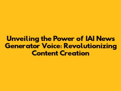 Unveiling The Power Of IAI News Generator Voice: Revolutionizing Content Creation