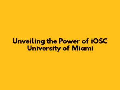 Unveiling The Power Of IOSC University Of Miami