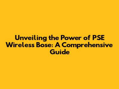 Unveiling The Power Of PSE Wireless Bose: A Comprehensive Guide