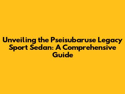 Unveiling The Pseisubaruse Legacy Sport Sedan