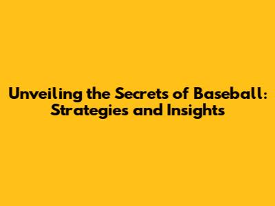 Unveiling The Secrets Of Baseball: Strategies And Insights