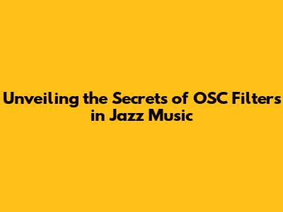 Unveiling The Secrets Of OSC Filters In Jazz Music