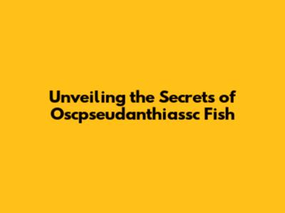 Unveiling The Secrets Of Oscpseudanthiassc Fish