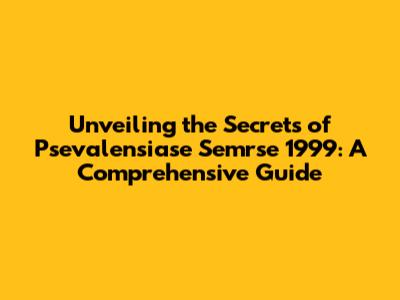 Unveiling The Secrets Of Psevalensiase Semrse 1999: A Comprehensive Guide