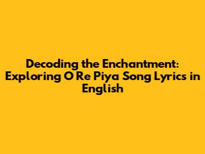 Unpacking the Lyrics: Delving into the 'O Re Piya' Song's English Translation