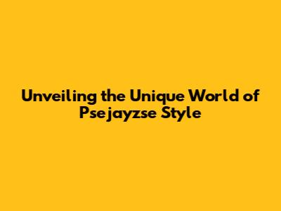 Unveiling The Unique World Of Psejayzse Style