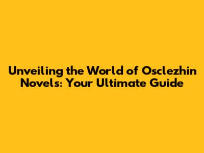 Unveiling The World Of Osclezhin Novels: Your Ultimate Guide