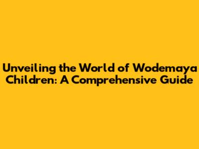 Unveiling The World Of Wodemaya Children: A Comprehensive Guide