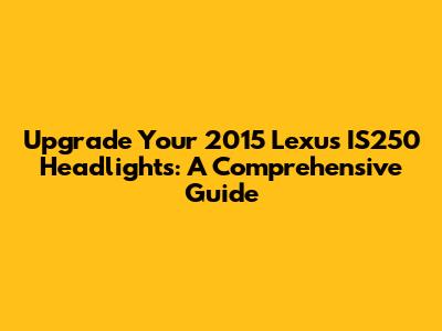 Hey there, car enthusiasts! If you're looking to upgrade your 2015 Lexus IS250 headlights, you've come to the right place. Replacing your headlights can significantly enhance your car's appearance and improve your night-time visibility, making your driving experience safer and more enjoyable. This guide will walk you through everything you need to know about choosing, installing, and maintaining new headlights for your beloved Lexus IS250.