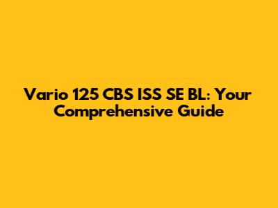 Vario 125 CBS ISS SE BL: Ultimate Guide & Troubleshooting