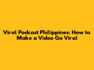 Viral Podcast Philippines: How To Make A Video Go Viral