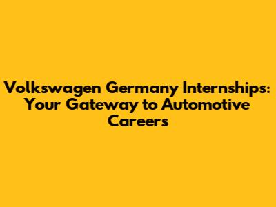 Volkswagen Germany Internships: Your Gateway To Automotive Careers