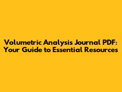 To make your search for volumetric analysis journal PDFs smoother, here are some tips:
