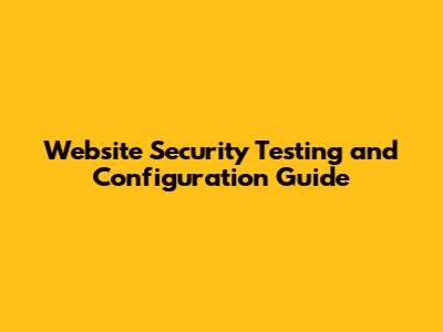 Website Security Testing And Configuration Guide