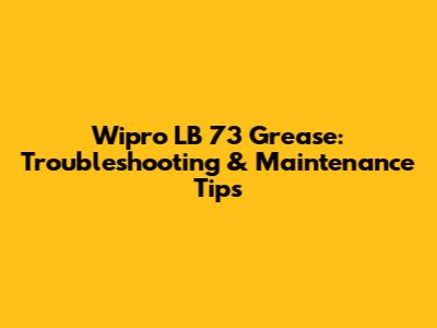 Wipro LB 73 Grease: Troubleshooting & Maintenance Tips