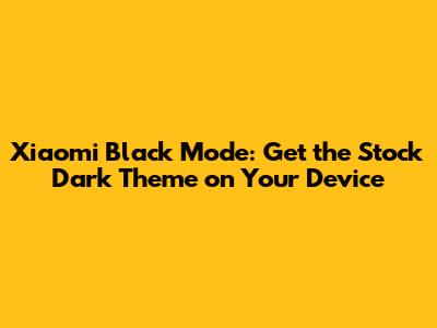 How to Enable Stock Black Mode on Your Xiaomi Device