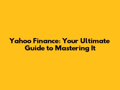 Yahoo Finance: Your Ultimate Guide To Mastering It