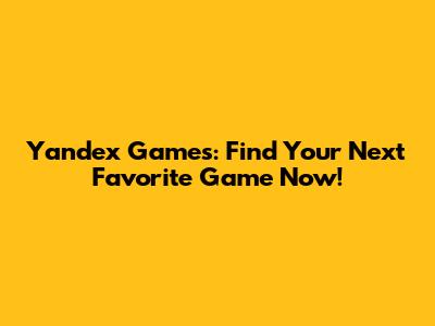 Yandex Games: Find Your Next Favorite Game Now!