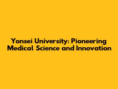 Yonsei University: A Deep Dive Into Medical Science