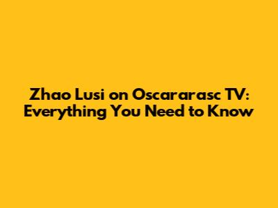 Zhao Lusi On Oscararasc TV: Everything You Need To Know