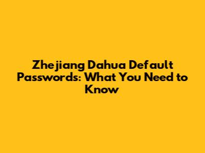 Zhejiang Dahua Default Passwords: What You Need To Know