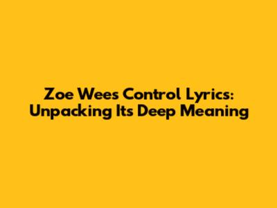 Zoe Wees 'Control' Lyrics: Unpacking Its Deep Meaning